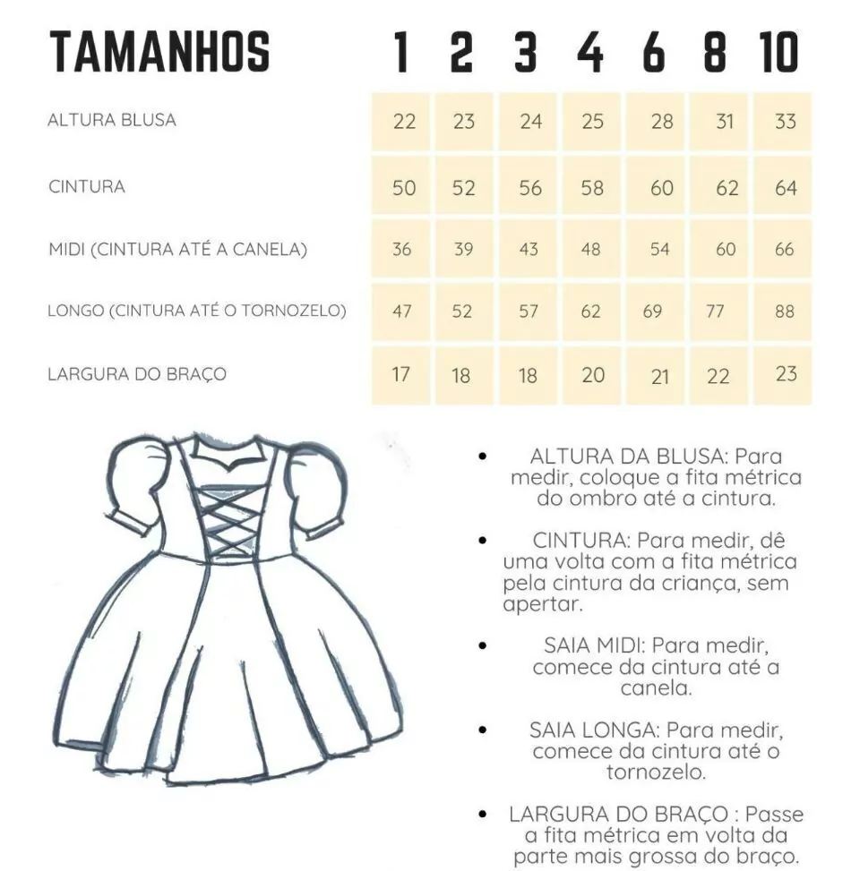 Tamanhos disponíveis: 1, 2, 3, 4, 6, 8 e 10