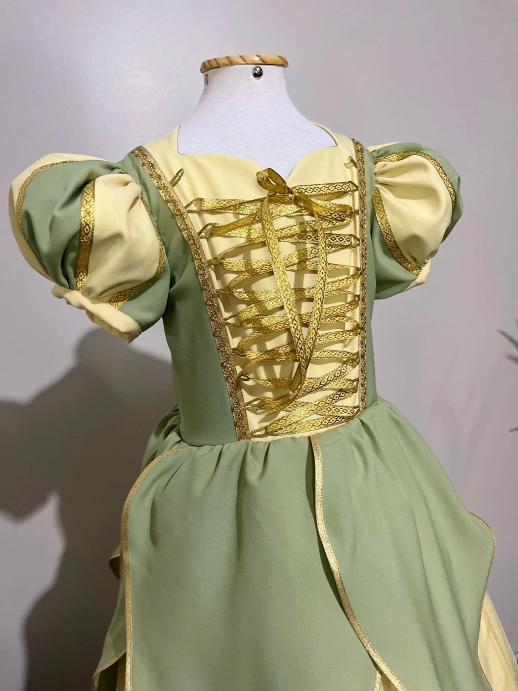 – Design inspirado no vestido clássico da Tiana, com detalhes florais e delicados